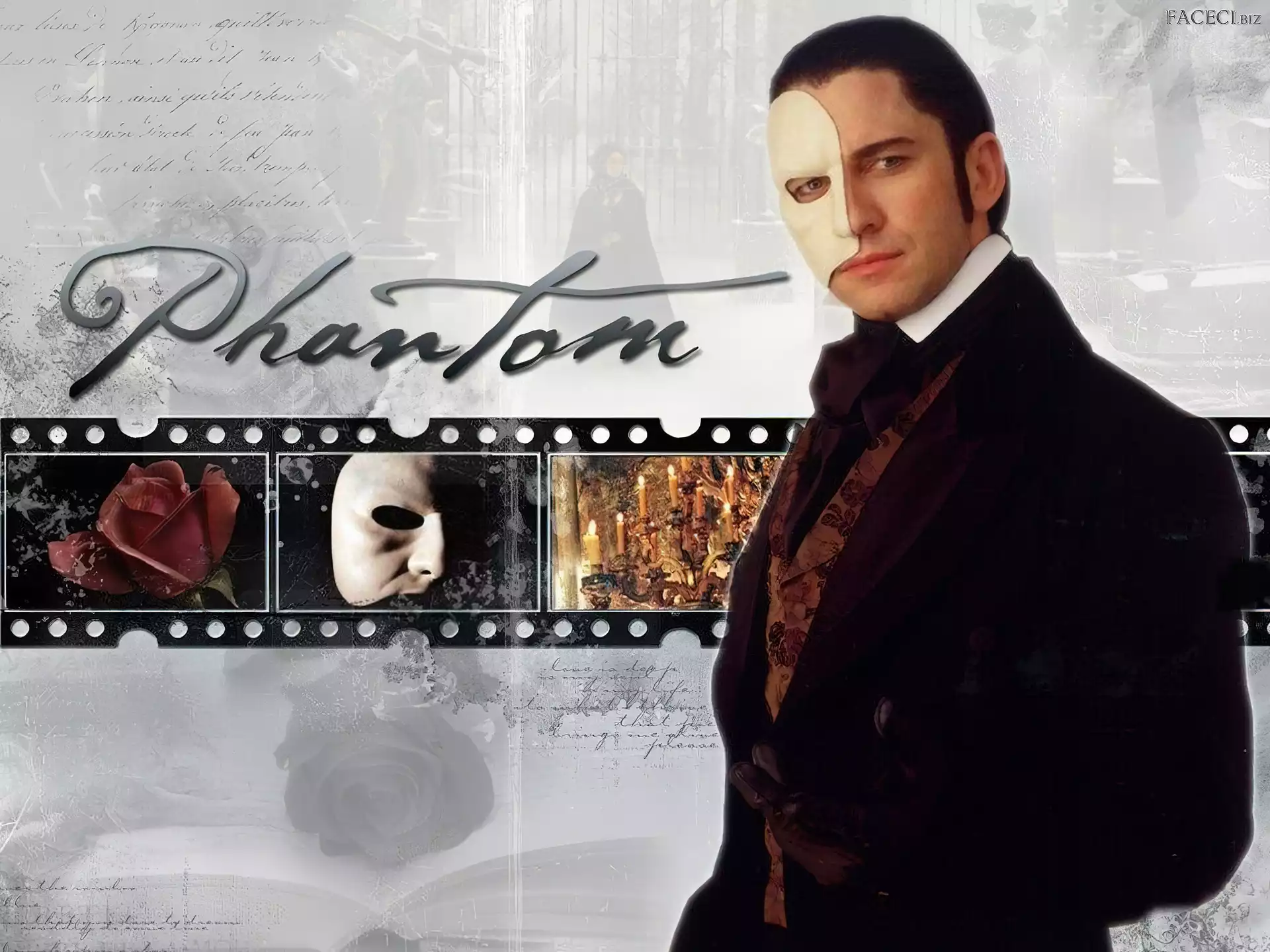 Gerard Butler, Emmy Rossum, napis, róża, Phantom Of The Opera Phantom Of The Opera, Gerard Butler, wiersz, smoking listek, Gerard Butler wąsy, Gerard Butler, twarz twarz, Gerard Butler, okulary kwiatek, Gerard Butler, biała koszula róża, maska, Emmy Rossum, Phantom Of The Opera, Gerard Butler usta, Gerard Butler, twarz niebieski sweterek, Gerard Butler róża, Gerard Butler, niebieskie oczy klucz wiolinowy, Gerard Butler broda, Gerard Butler, ciemne włosy woda, Gerard Butler, bransoleta Phantom Of The Opera, Emmy Rossum, bal, Gerard Butler